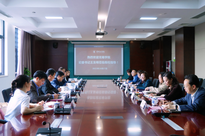 10月27日,无锡学院党委常委、纪委书记王友明一行来校交流调研。副校长汪群、党委组织部、纪委办公室、人事处、教务处、科研处等职能部门负责人参加座谈。