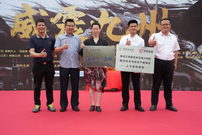 徐茵代表学院进行“五合一”基地授牌。随后,徐茵与乔司影视董事长刘俊辰共同揭牌“数字艺术与技术产教融合人才培养基地”。