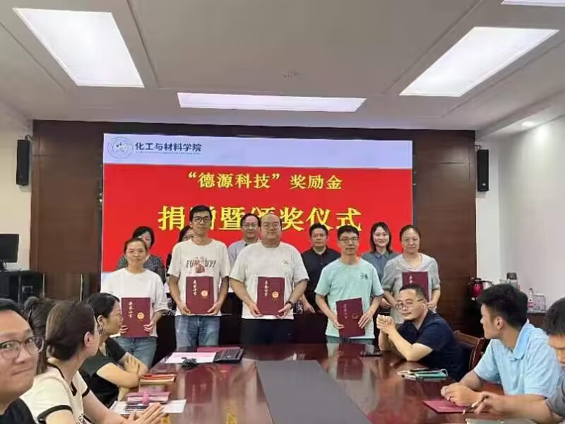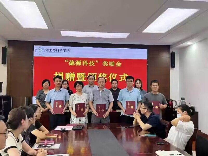 校企携手,共励英才。7月2日,江苏德源材料科技有限公司捐赠12万元奖励化工与材料学院优秀师生,鼓励其砥砺前行、不懈努力,以干事创业、攻坚克难的精神勇担责任、奋勇争先,用优秀成绩回报学校、回报社会。