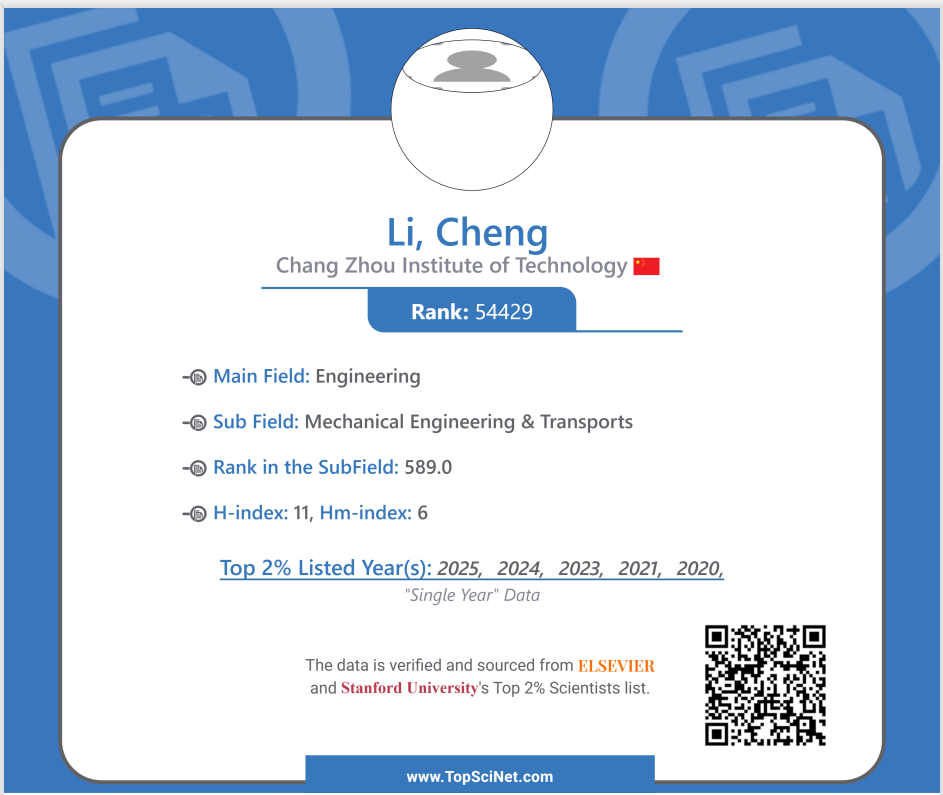 近日,美国斯坦福大学与国际权威学术出版社爱思唯尔重磅发布2025年全球前2%顶尖科学家榜单。我校汽车工程学院新能源汽车先进材料结构与传感技术实验室李成教授入选“终身影响力榜”和“年度科学影响力榜”。