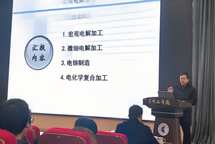 报告中,曲宁松围绕宏观电解加工、微细电解加工、电铸铸造及电化学复合加工四大方向,结合自身研究积累,阐述了电化学制造技术在航空航天关键零部件制造中的独特优势与创新应用。他系统介绍团队科研成果,前瞻性剖析技术面临的挑战与发展趋势,并与参会教师展开交流。