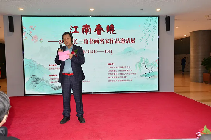 近日,“江南春晓—2026长三角书画名家作品邀请展”在上海浦东图书馆隆重开幕,我校艺术与设计学院为本次展览支持单位之一。九三学社社员、国家一级美术师李昱春教授应邀参展,并作为参展艺术家代表在开幕式上发言,分享创作心得与参展感悟。