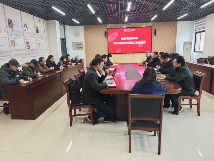 3月11日,经济与管理学院召开2026届毕业生就业工作推进会,学院领导班子成员、各系部主任、班主任及就业辅导员参会,学院党委副书记郭峥春主持会议。
