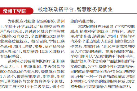 常州工学院:校地联动搭平台,智慧服务促就业