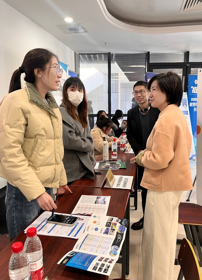 常州市台办副主任杭芸到场走访,了解企业用人需求与岗位设置,并与学生交流职业发展、薪酬福利、晋升通道等话题。我校港澳台办公室主任金中坤向其介绍了学校“伴城而立、融城而兴”办学理念和“地方性、应用型、国际化”办学定位,重点汇报港澳台学生“招生—培养—实习—就业”全链条服务体系,希望与市台办共建长效机制,为港澳台青年在常发展提供支持。