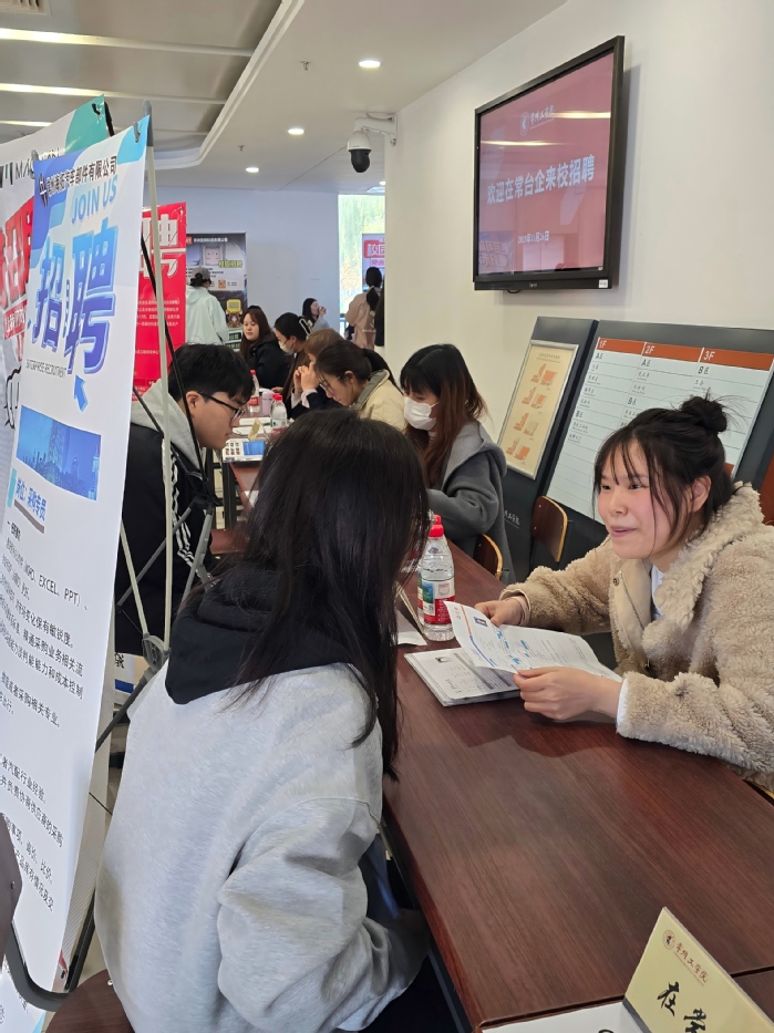 为助力2026届港澳台毕业生在常就业,11月26日,我校港澳台办公室联合常州市台办举办“2026届毕业生秋季招聘会——台资企业专场”。光宝科技、常州永和精细化学等多家在常重点台企携百余岗位进校揽才,岗位涵盖化工、智能制造、电子信息、新能源、供应链管理等多领域,吸引众多学生应聘。