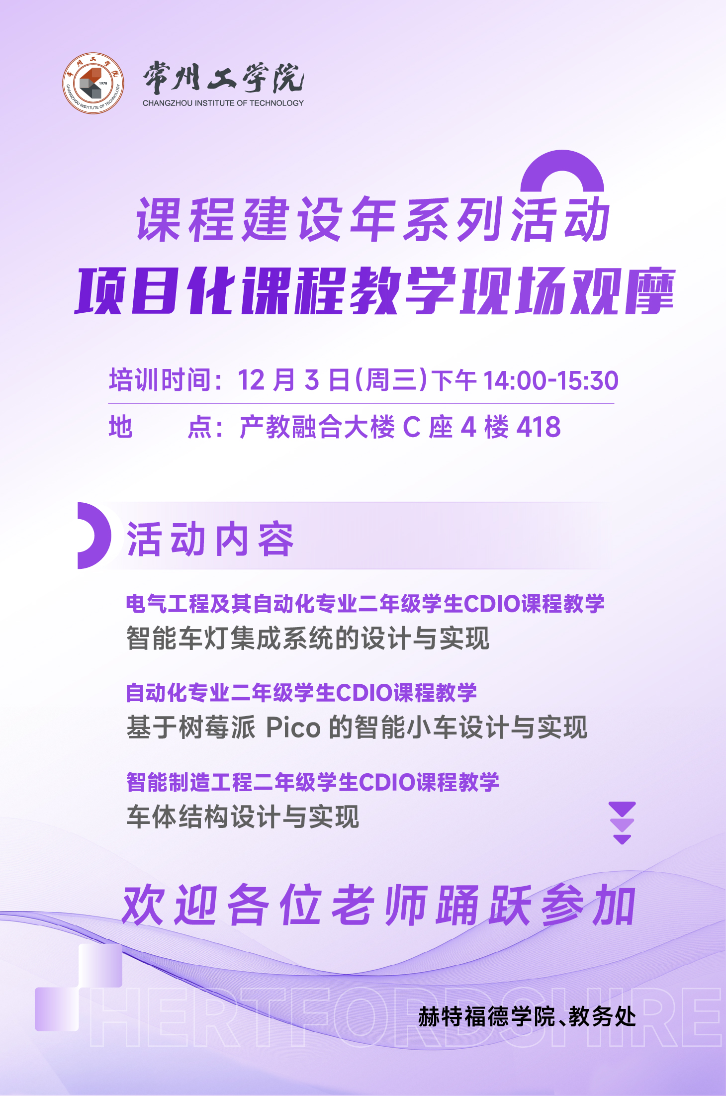 12月3日|“课程建设年”系列活动 项目化课程教学现场观摩