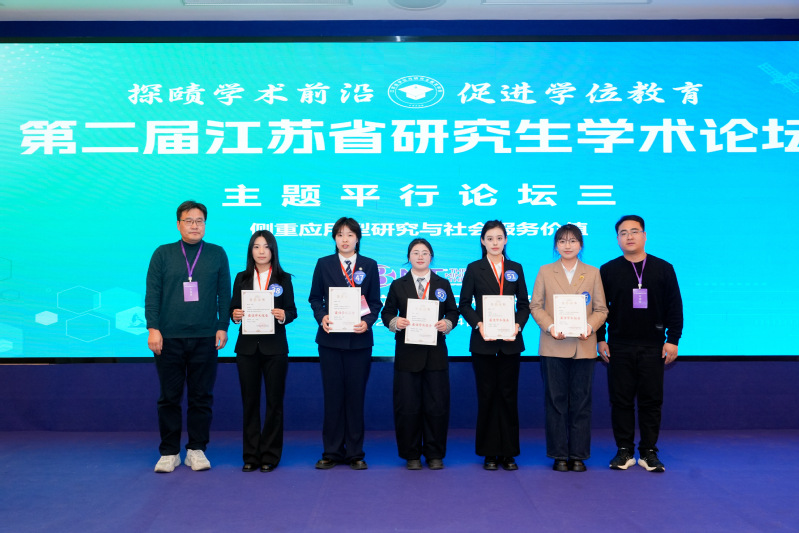 12月24日,第二届江苏省研究生学术论坛竞赛在南京举行。我校研究生处精心组织,选拔4名优秀研究生参赛并全部获奖,其中,化工与材料学院研究生翟芳怡荣获最佳学术报告奖,电气信息工程学院研究生张森、机械工程学院研究生王文杰、化工与材料学院研究生刘纪强获优秀学术报告奖。