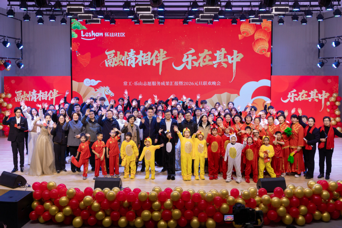 12月27日晚,常工·乐山志愿服务成果汇报暨2026元旦联欢晚会在师范学院音乐厅举行,以“融情相伴 乐在其中”为主题,集中展示师范学院与乐山社区一年来志愿服务合作成果,共迎新年。