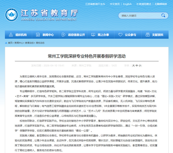 (文章来源:江苏省教育厅高校动态2026年4月10日)